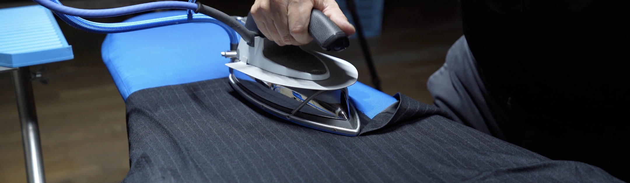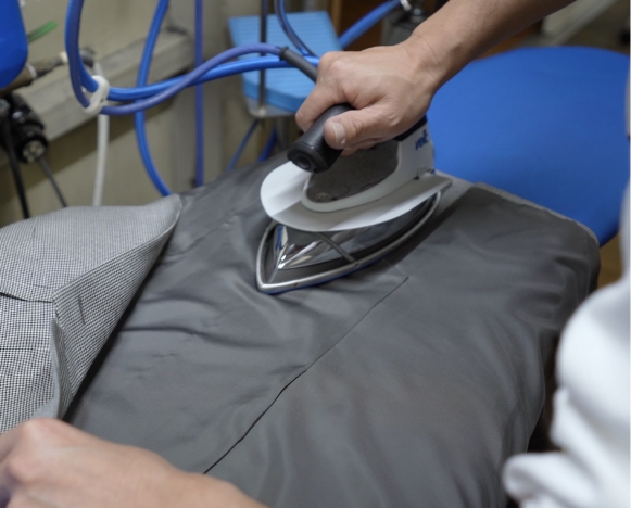 スーツ・ジャケットなどの製品を、各パーツごとに専用のプレス機を使って整形仕上げします。袖・肩・ラペル・脇など、細部まで立体的なフォルムを作り出し、着る人の印象を美しく整えます。